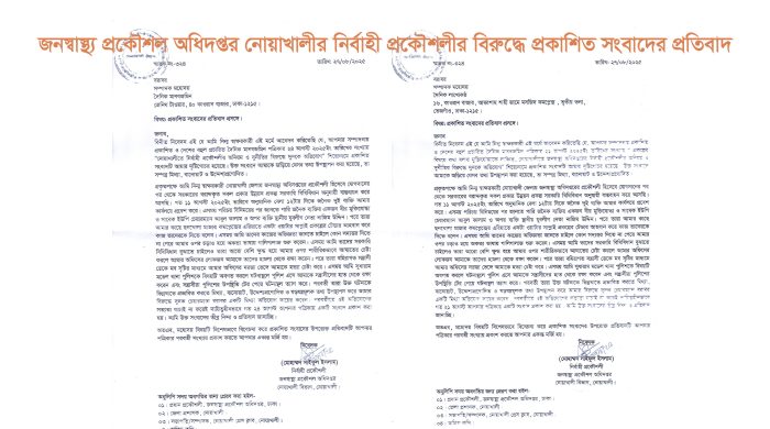 নোয়াখালীতে নির্বাহী প্রকৌশলীর বিরুদ্ধে প্রকাশিত সংবাদের প্রতিবাদ